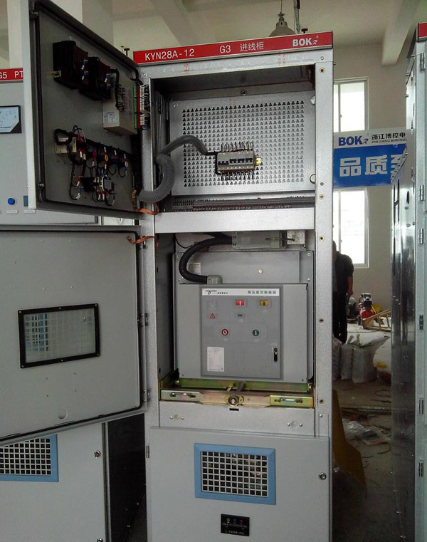 KYN28(GZS)型戶內(nèi)金屬鎧裝抽出式開關(guān)設(shè)備(以下簡稱開關(guān)設(shè)備)。該開關(guān)設(shè)備系3-10KV三相交流50Hz單母線分段系統(tǒng)的成套配電裝置。主要用于發(fā)電廠、中小型發(fā)電機送電、工礦企事業(yè)配電以及電業(yè)系統(tǒng)的二次變電所的受電、送電及大型高壓電動機起動等,實行控制保護、監(jiān)測之用。具有防止帶負(fù)荷推拉斷路器手車、防止誤分合斷路器、防止接地開關(guān)處在閉合位置時關(guān)合斷路器、防止誤入帶電隔室、防止在帶電時誤合接地開關(guān)的聯(lián)鎖功能,既可配用VS1真空斷路器,也可配用ABB公司的VD4真空斷路器,是一種性能優(yōu)越的配電裝置。