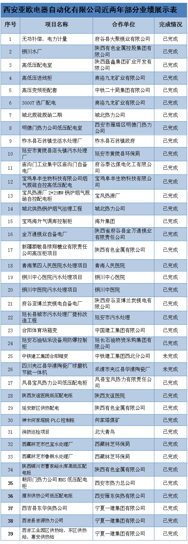 西安亞歐電氣設(shè)備集團(tuán)有限公司近兩年部分業(yè)績(jī)展示表
